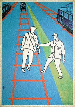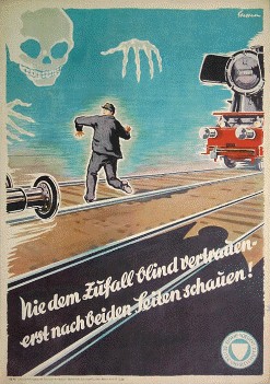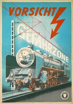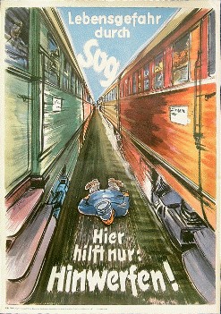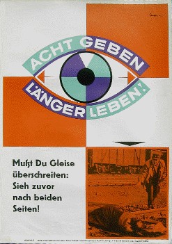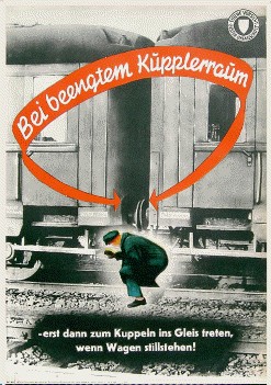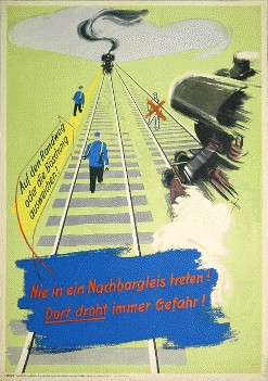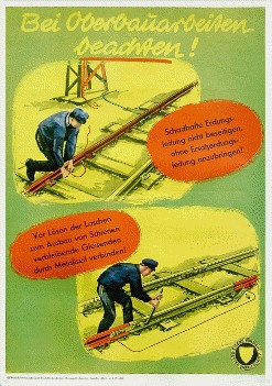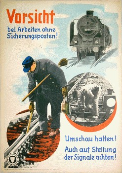 Plakate der Bahn zum Thema Unfallverhütung (UVV) etc.