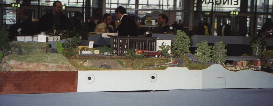 Vom Fremo-Gedanken infiziert, trete ich kurz darauf dem Verein bei und konnte auf den ersten Treffen schon Erfahrungen mit dem Eisenbahn'spiel' im großen Rahmen gewinnen. Geplant habe ich jetzt den Aus- und Umbau dieses ersten Moduls: Das Anschlußgleis soll bis zur Modulkante verlängert werden und auf den nächsten Modulen zu einem größeren Industriegebiet anwachsen.